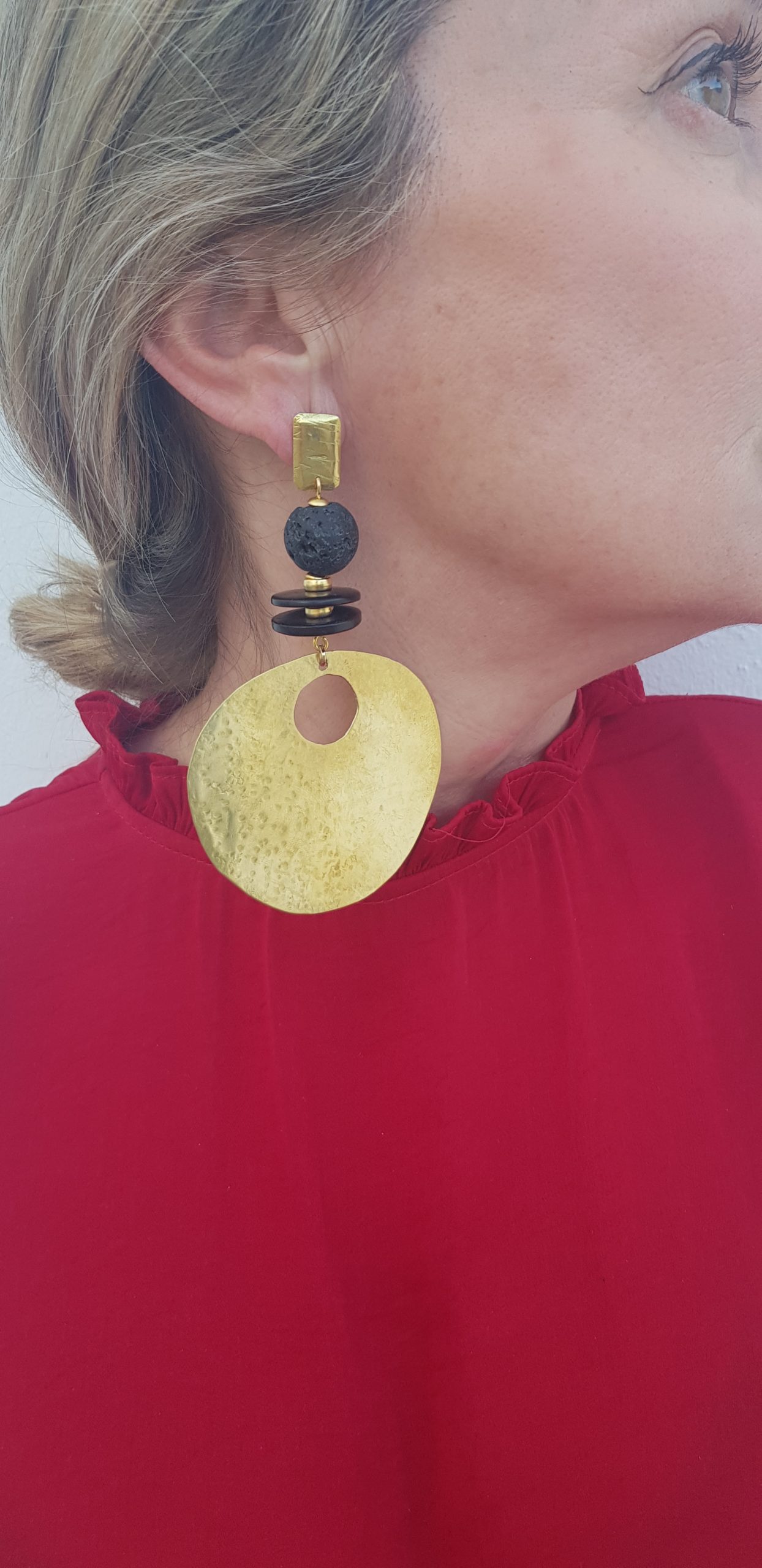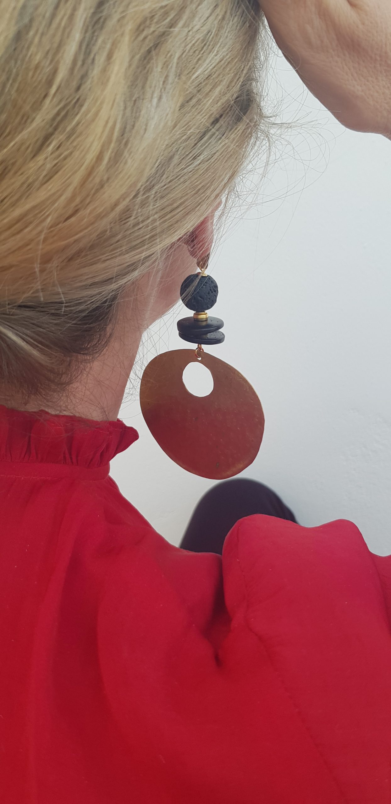 Pendientes de latón, madera y lava, hechos a mano, piezas únicas
