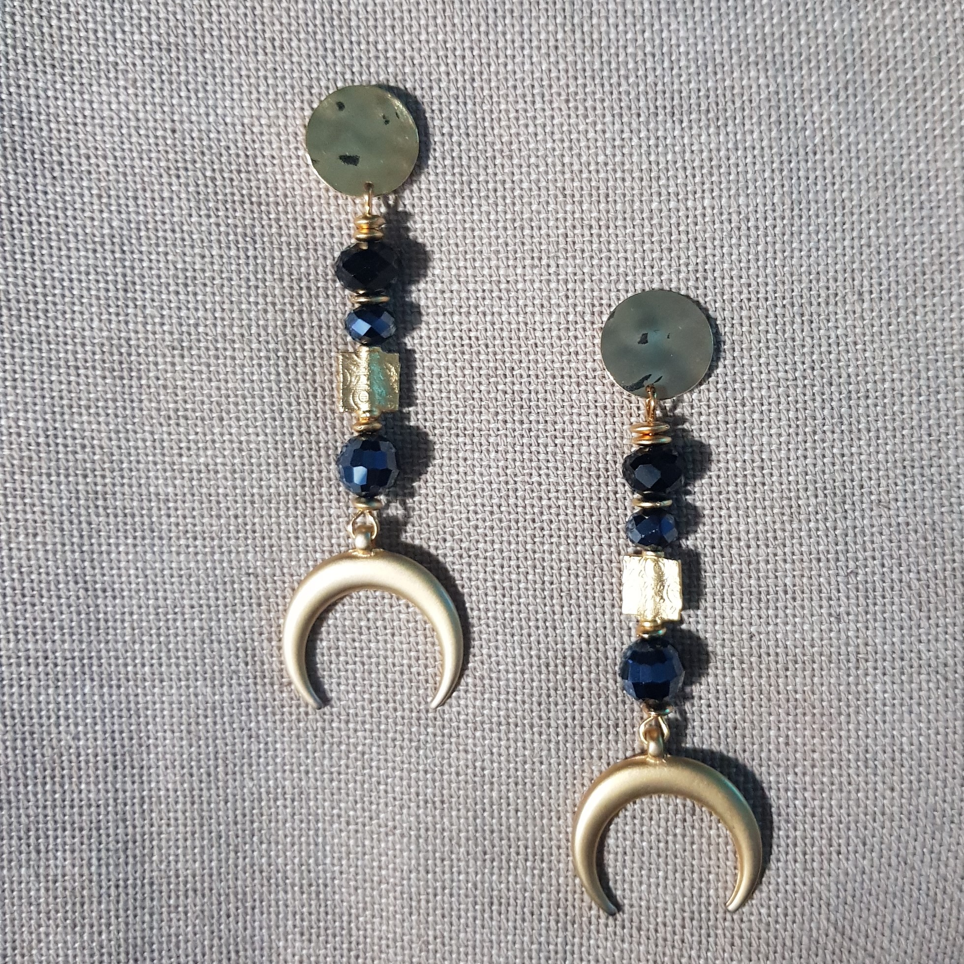 Pendientes largos con cristal de roca en grafito y negro con luna